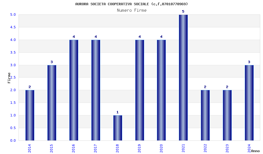 | Anno | Firme | Importi | Media | Naz. | Reg. | Prov. | Comu. |