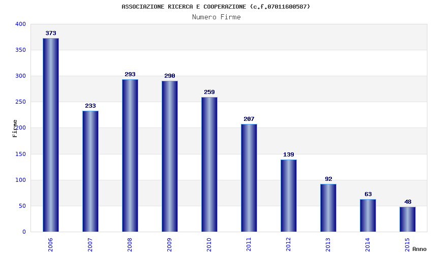 | Anno | Firme | Importi | Media | Naz. | Reg. | Prov. | Comu. |