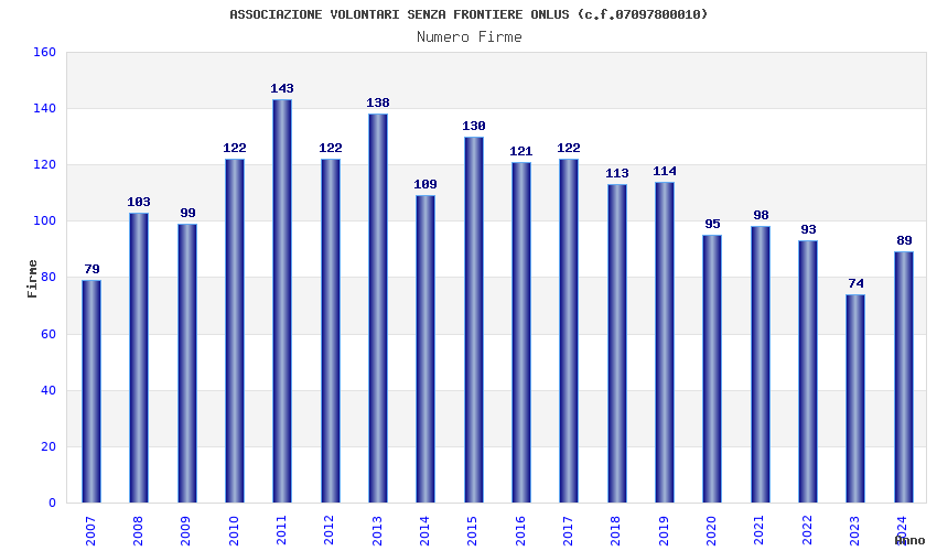 | Anno | Firme | Importi | Media | Naz. | Reg. | Prov. | Comu. |