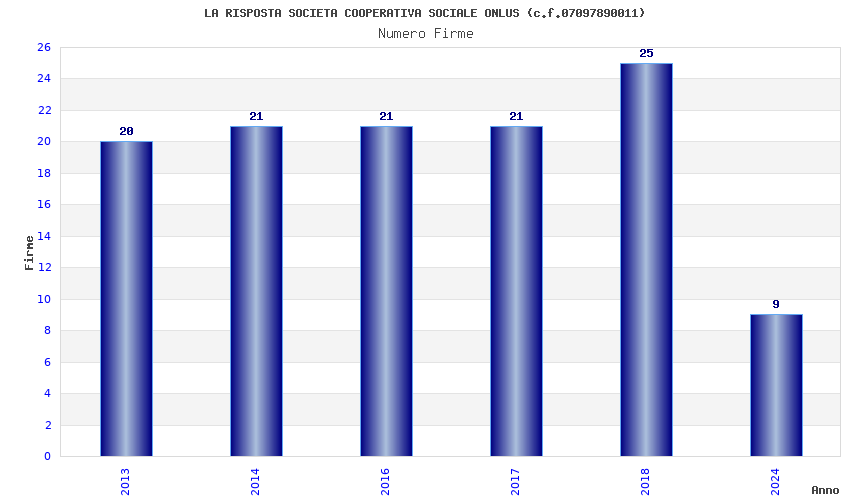 | Anno | Firme | Importi | Media | Naz. | Reg. | Prov. | Comu. |