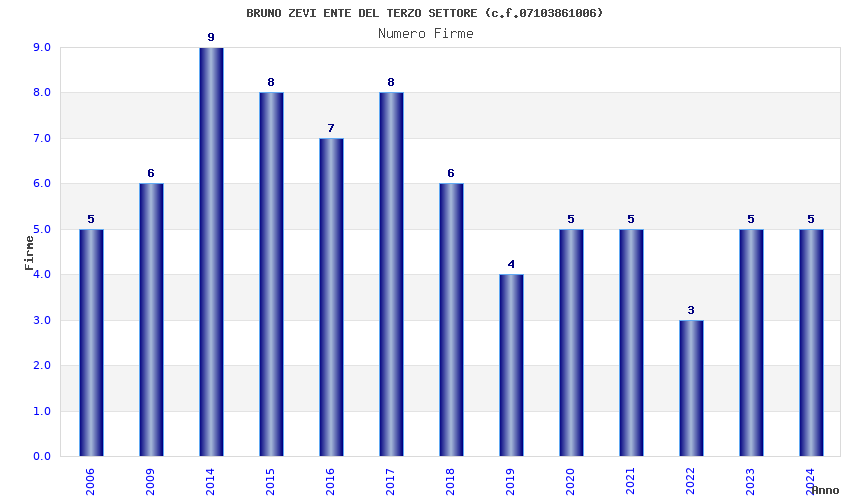 | Anno | Firme | Importi | Media | Naz. | Reg. | Prov. | Comu. |