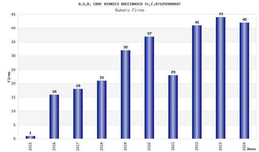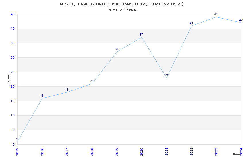 | 2023 | 44 | 1.765,47 | 40,12 | 25.877 | 5.396 | 1.874 | 13 |