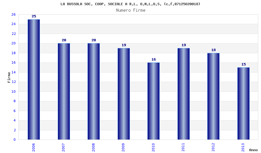 | Anno | Firme | Importi | Media | Naz. | Reg. | Prov. | Comu. |