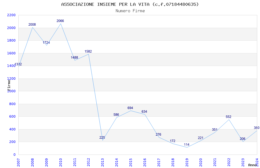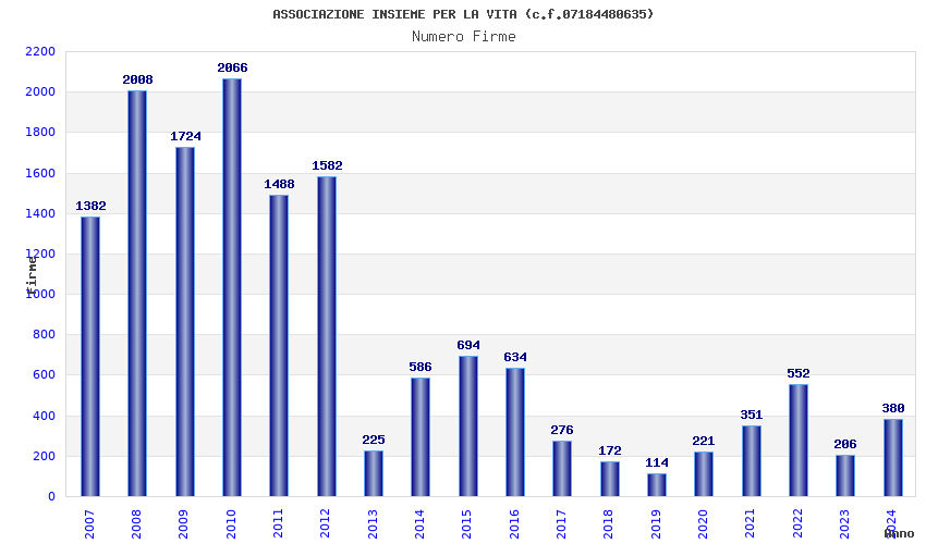 | Anno | Firme | Importi | Media | Naz. | Reg. | Prov. | Comu. |