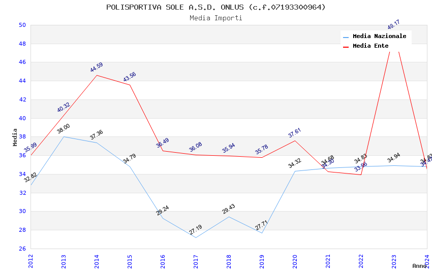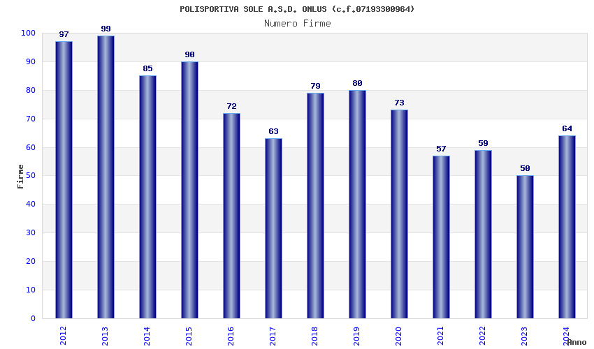 | Anno | Firme | Importi | Media | Naz. | Reg. | Prov. | Comu. |