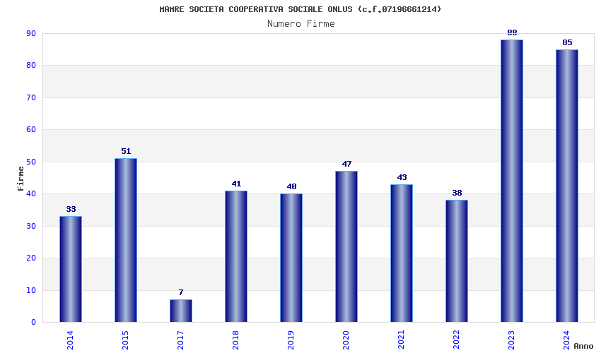| Anno | Firme | Importi | Media | Naz. | Reg. | Prov. | Comu. |