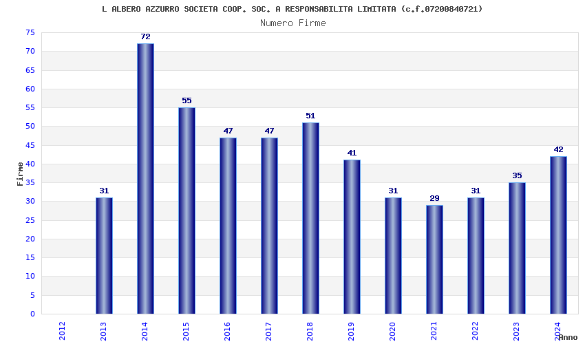 | Anno | Firme | Importi | Media | Naz. | Reg. | Prov. | Comu. |