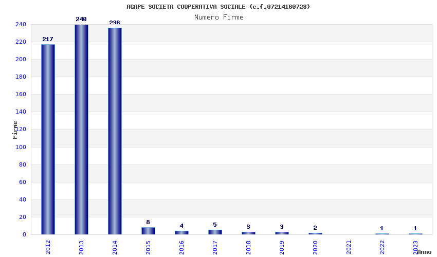 | Anno | Firme | Importi | Media | Naz. | Reg. | Prov. | Comu. |