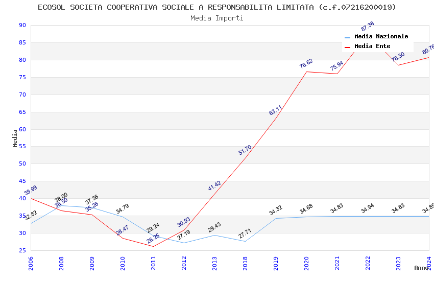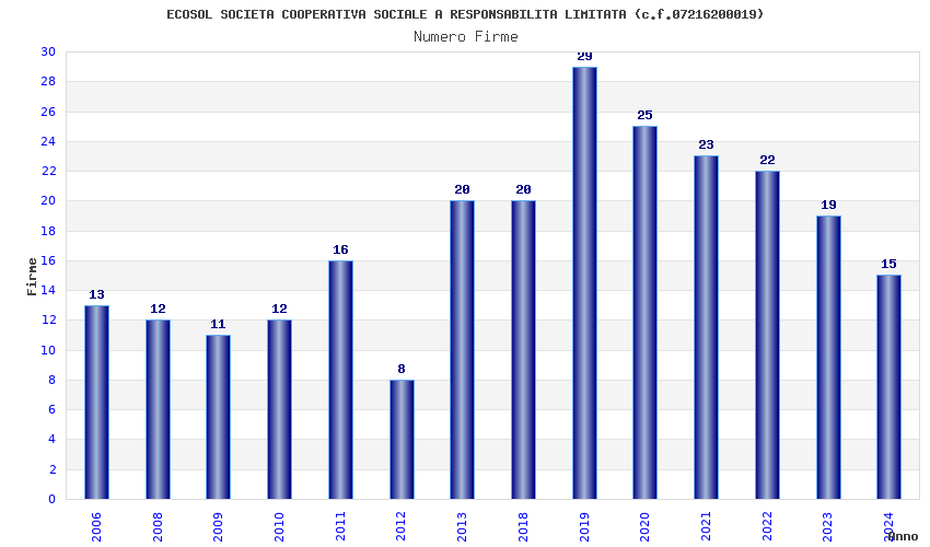 | Anno | Firme | Importi | Media | Naz. | Reg. | Prov. | Comu. |