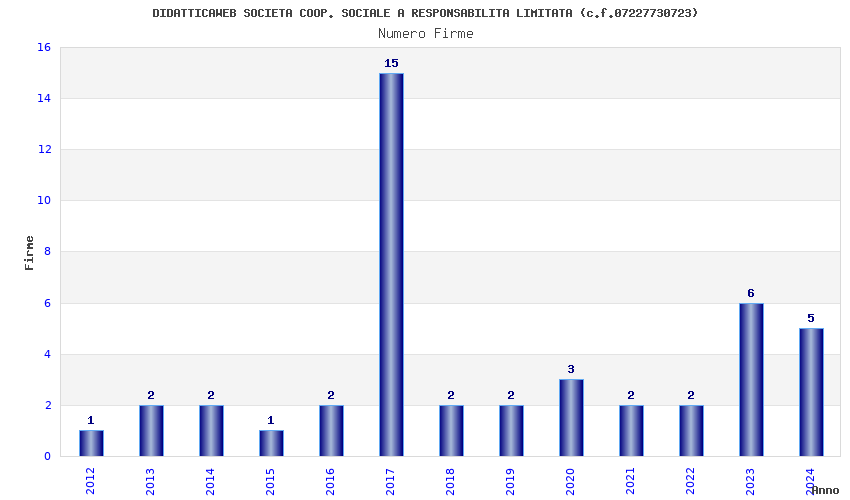 | Anno | Firme | Importi | Media | Naz. | Reg. | Prov. | Comu. |