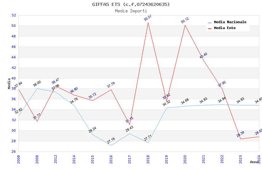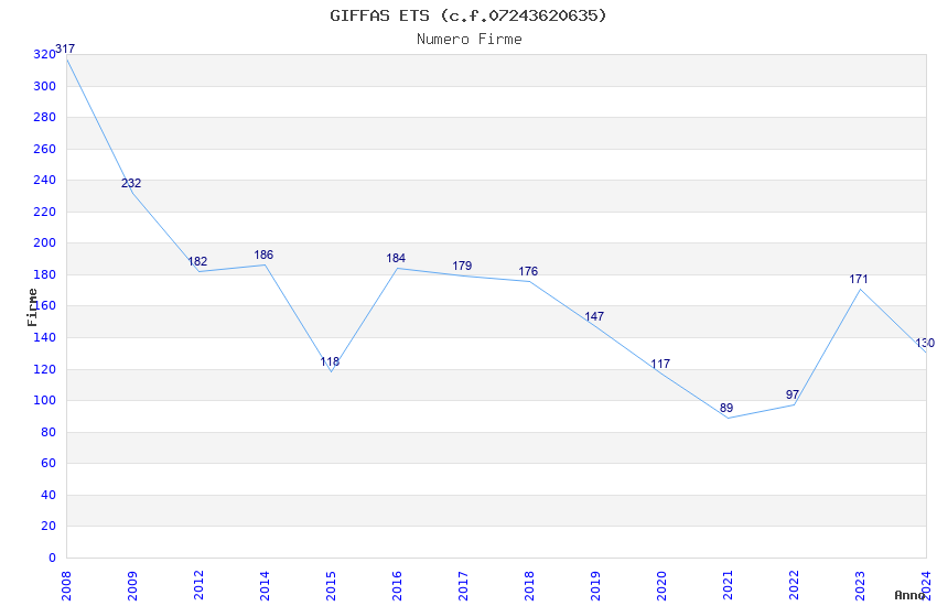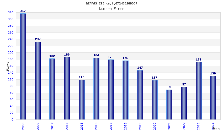 | Anno | Firme | Importi | Media | Naz. | Reg. | Prov. | Comu. |