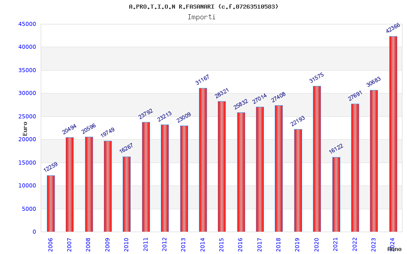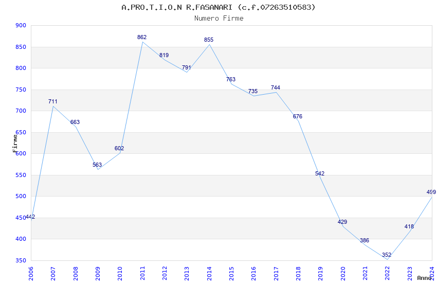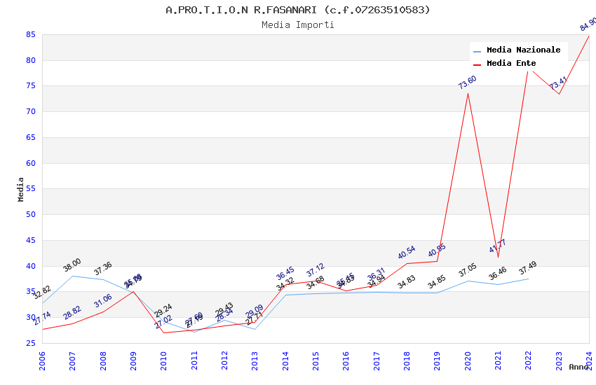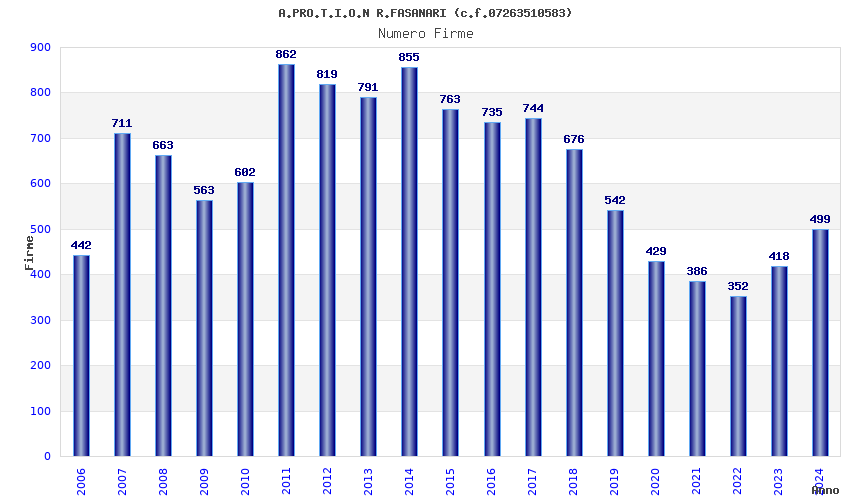 | Anno | Firme | Importi | Media | Naz. | Reg. | Prov. | Comu. |