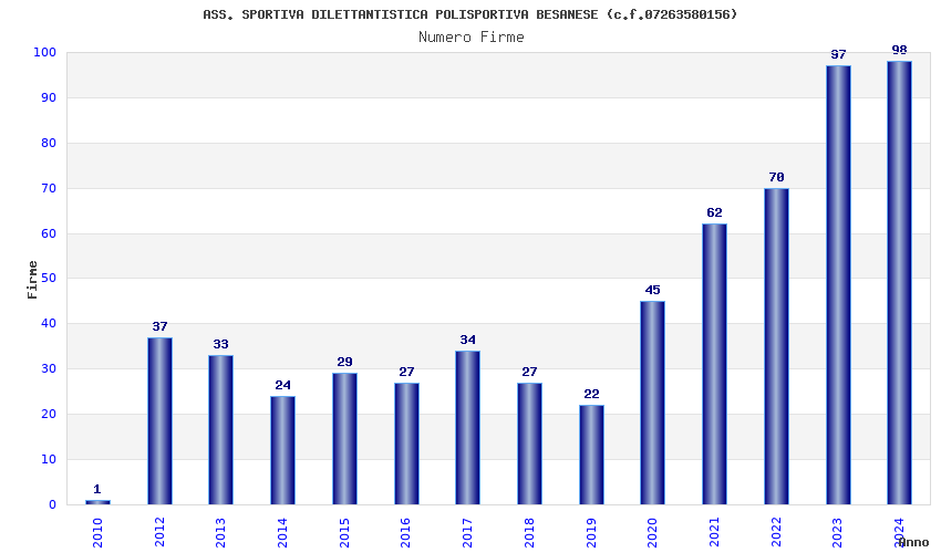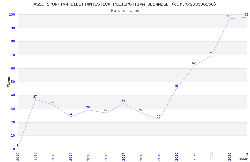 | 2024 | 98 | 3.623,35 | 36,97 | 14.726 | 3.223 | 262 | 2 |