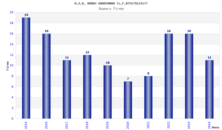| Anno | Firme | Importi | Media | Naz. | Reg. | Prov. | Comu. |