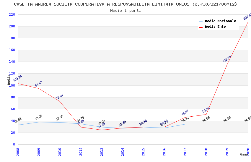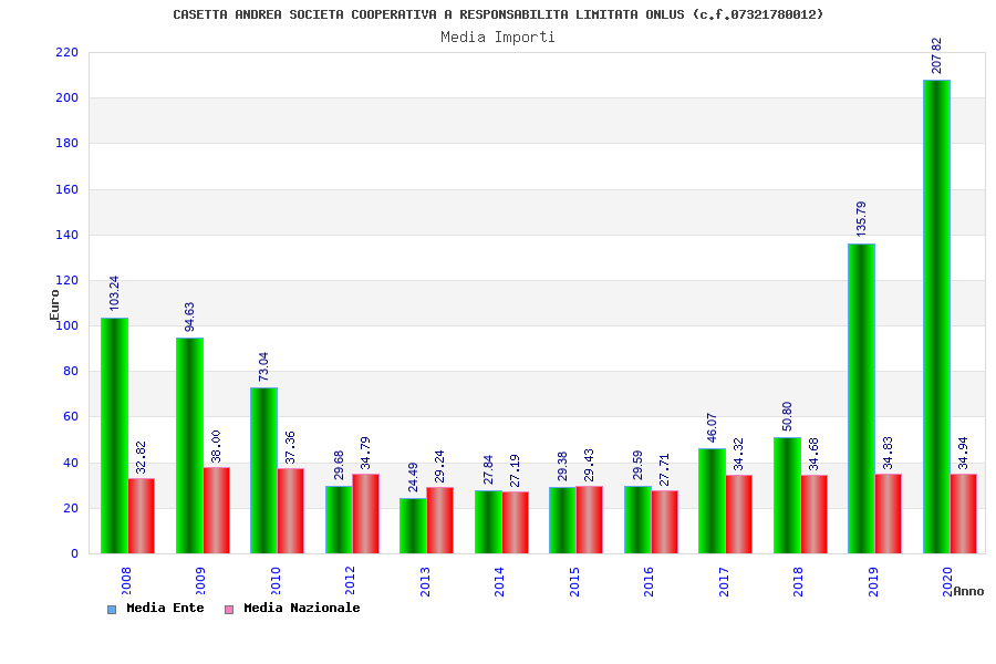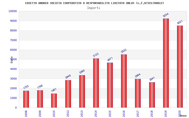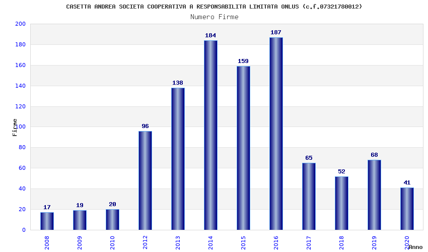 | Anno | Firme | Importi | Media | Naz. | Reg. | Prov. | Comu. |