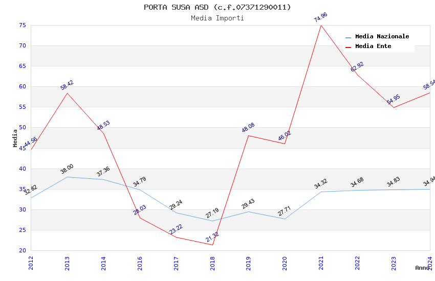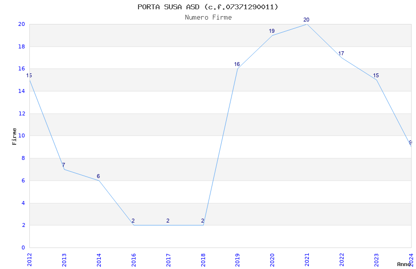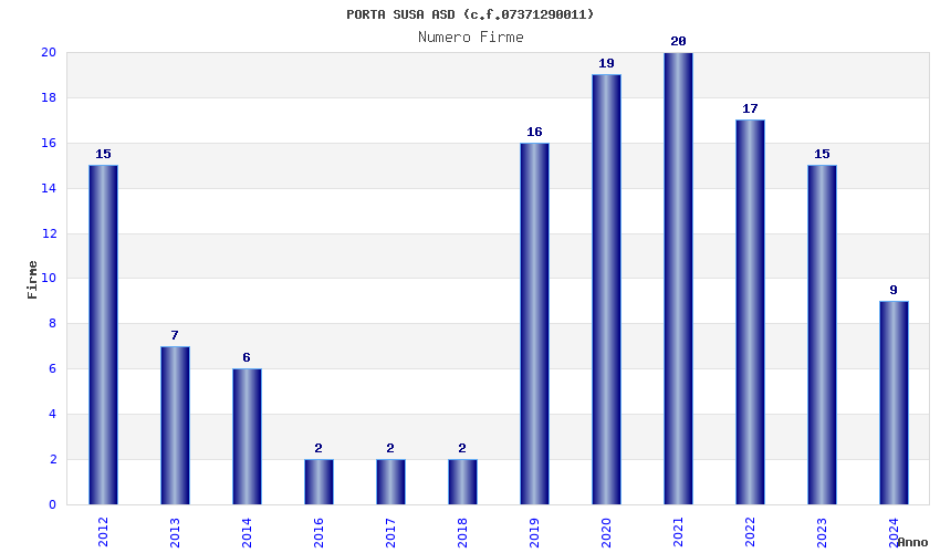 | Anno | Firme | Importi | Media | Naz. | Reg. | Prov. | Comu. |