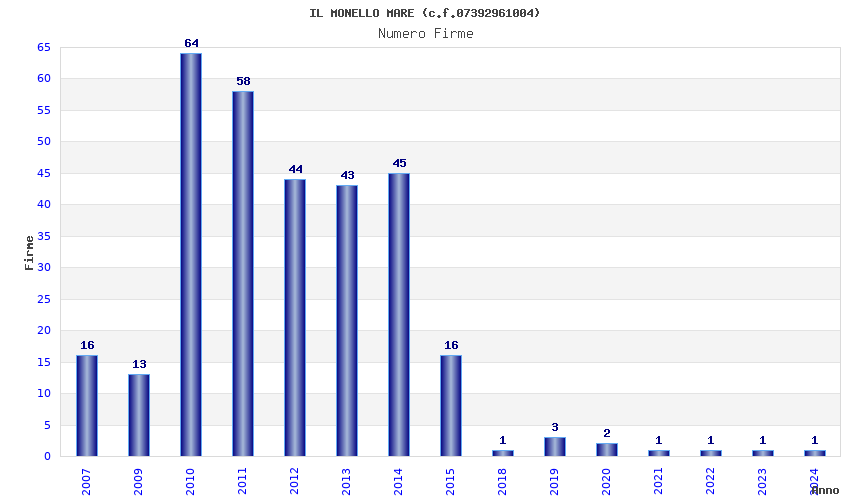 | Anno | Firme | Importi | Media | Naz. | Reg. | Prov. | Comu. |
