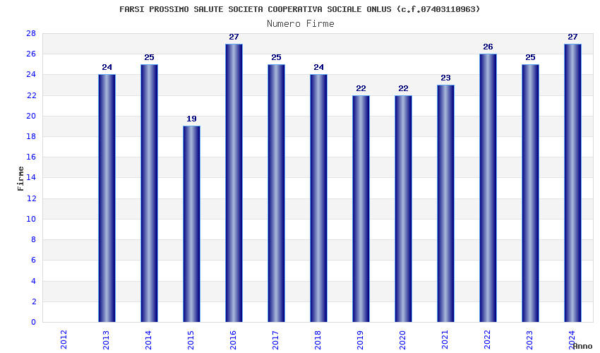 | Anno | Firme | Importi | Media | Naz. | Reg. | Prov. | Comu. |