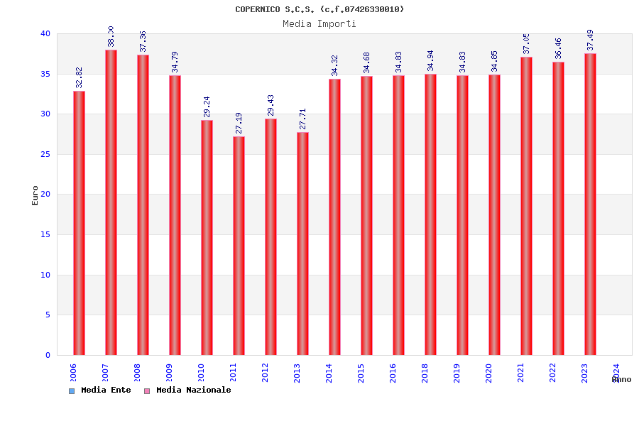 | Anno | Firme | Importi | Media | Naz. | Reg. | Prov. | Comu. |