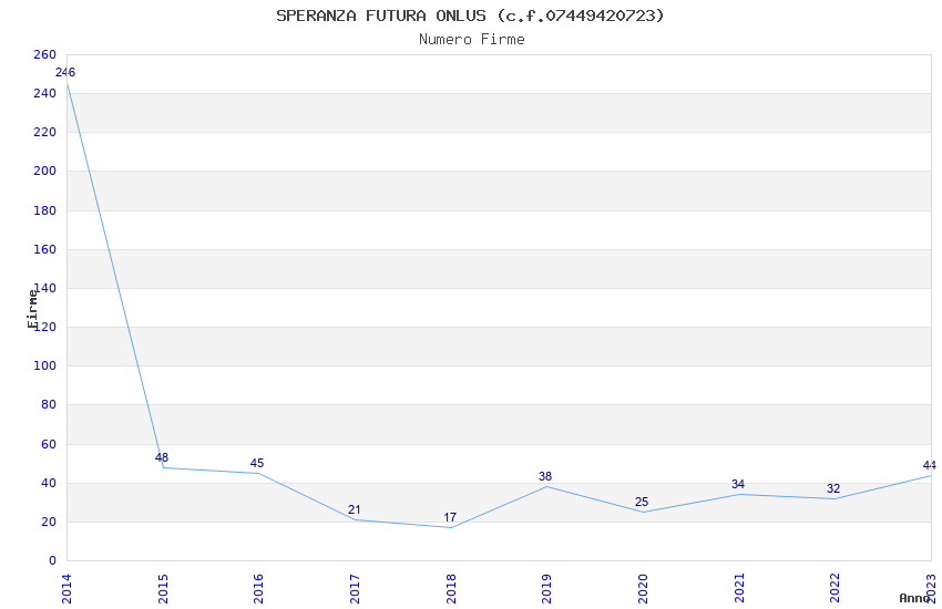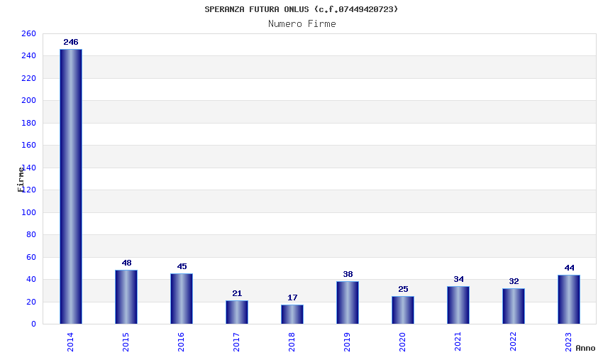 | Anno | Firme | Importi | Media | Naz. | Reg. | Prov. | Comu. |