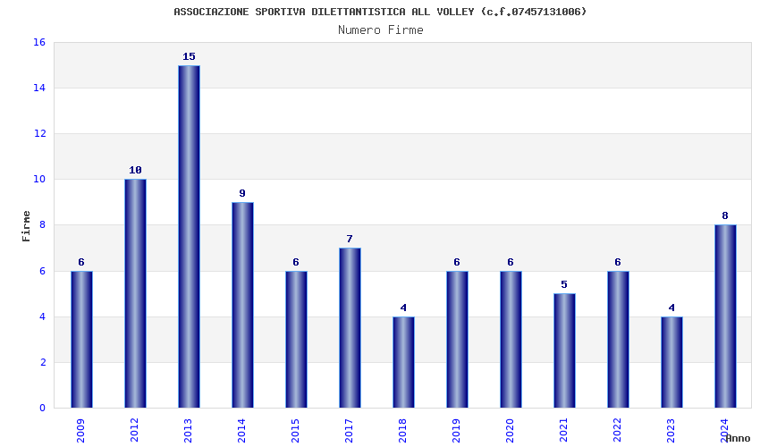 | Anno | Firme | Importi | Media | Naz. | Reg. | Prov. | Comu. |