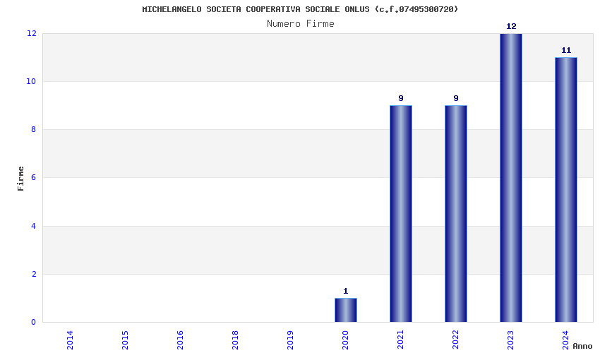 | Anno | Firme | Importi | Media | Naz. | Reg. | Prov. | Comu. |