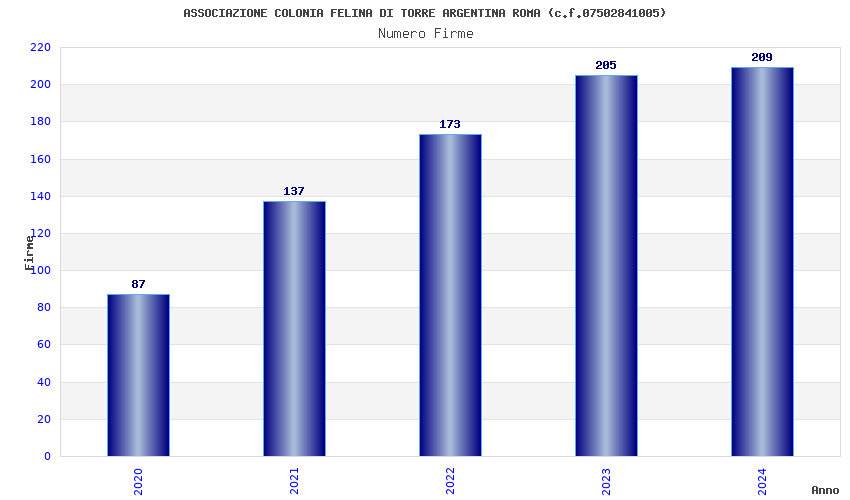 | Anno | Firme | Importi | Media | Naz. | Reg. | Prov. | Comu. |
