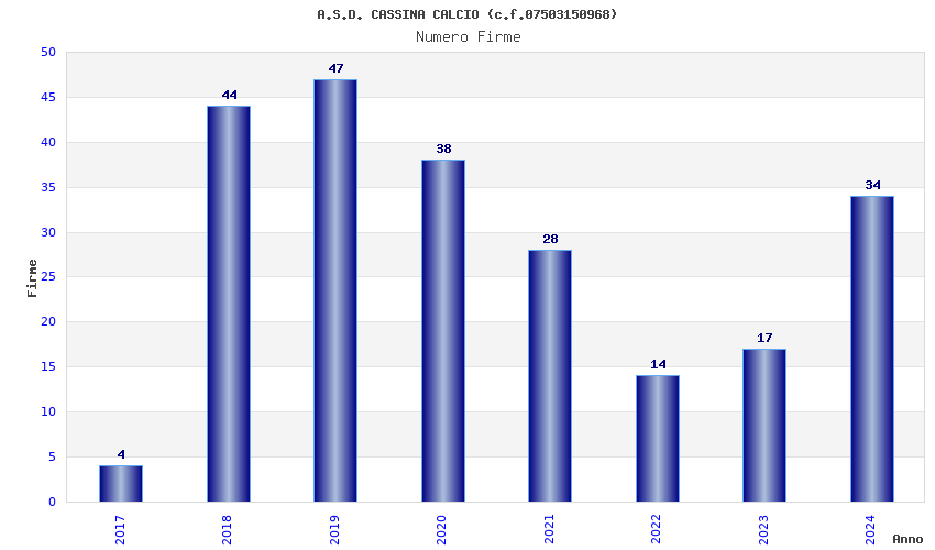 | Anno | Firme | Importi | Media | Naz. | Reg. | Prov. | Comu. |