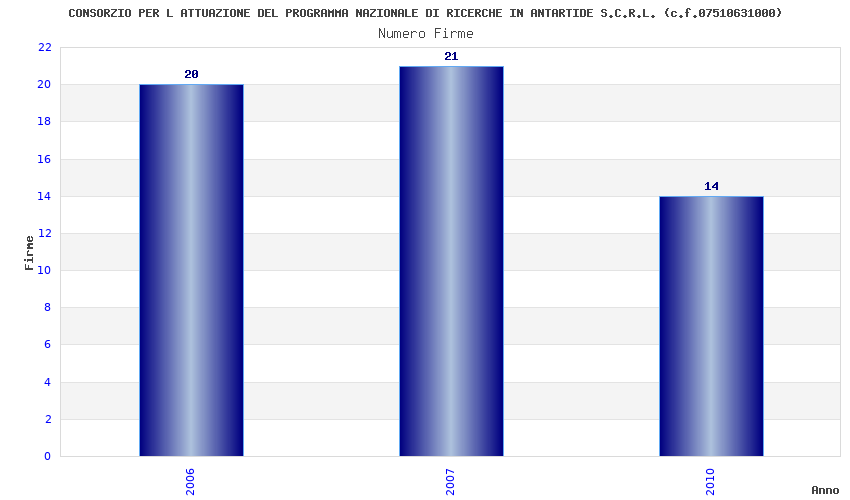 | Anno | Firme | Importi | Media | Naz. | Reg. | Prov. | Comu. |