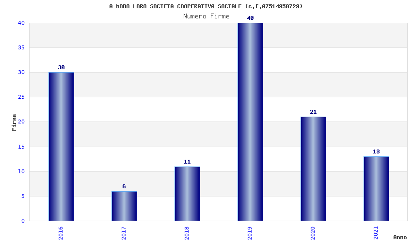 | Anno | Firme | Importi | Media | Naz. | Reg. | Prov. | Comu. |