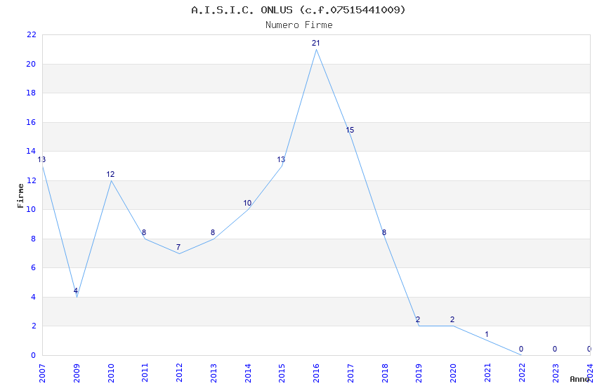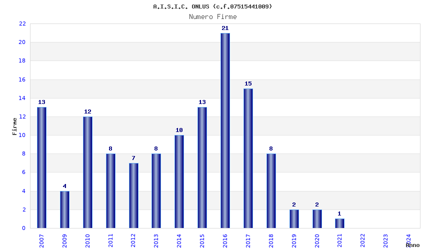 | Anno | Firme | Importi | Media | Naz. | Reg. | Prov. | Comu. |
