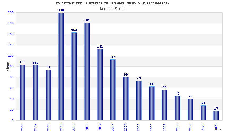 | Anno | Firme | Importi | Media | Naz. | Reg. | Prov. | Comu. |