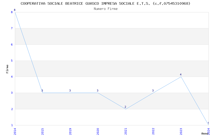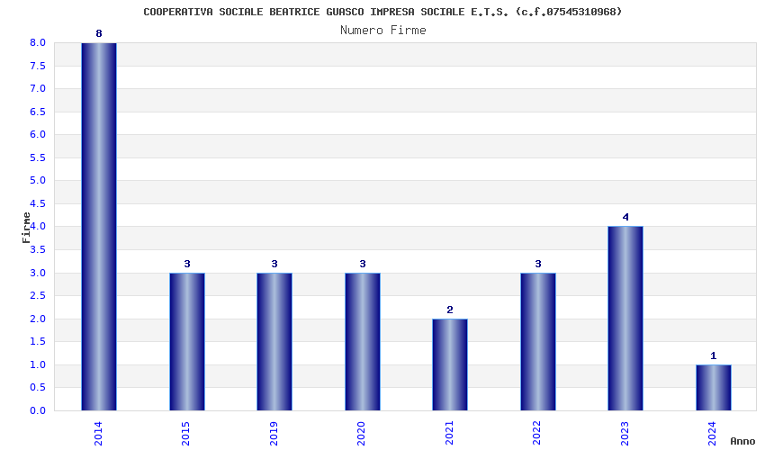 | Anno | Firme | Importi | Media | Naz. | Reg. | Prov. | Comu. |