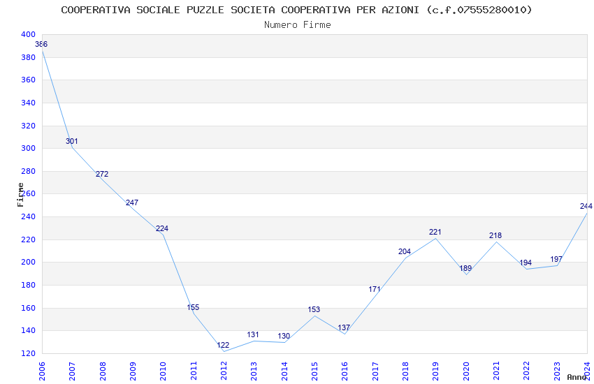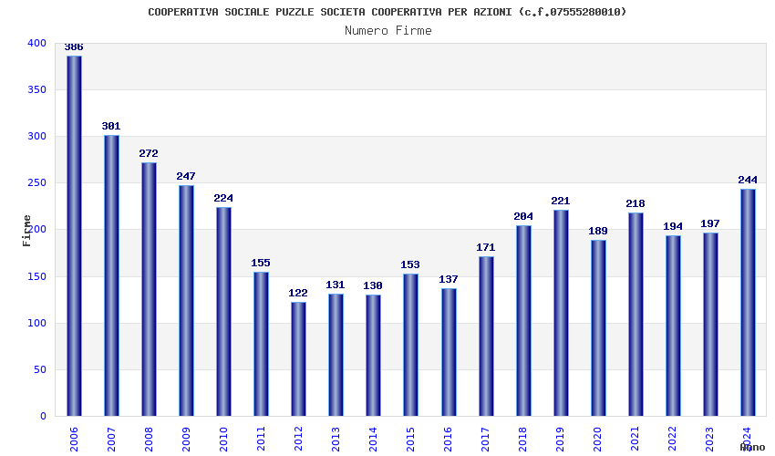 | Anno | Firme | Importi | Media | Naz. | Reg. | Prov. | Comu. |
