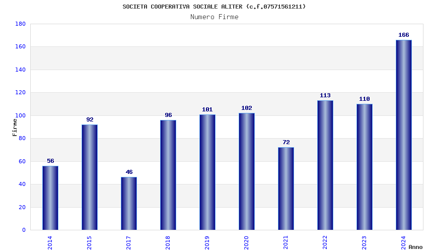 | Anno | Firme | Importi | Media | Naz. | Reg. | Prov. | Comu. |