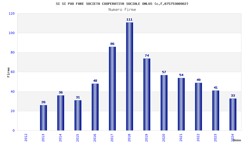 | Anno | Firme | Importi | Media | Naz. | Reg. | Prov. | Comu. |