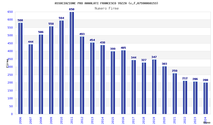 | Anno | Firme | Importi | Media | Naz. | Reg. | Prov. | Comu. |