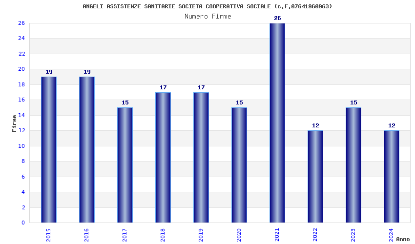 | Anno | Firme | Importi | Media | Naz. | Reg. | Prov. | Comu. |