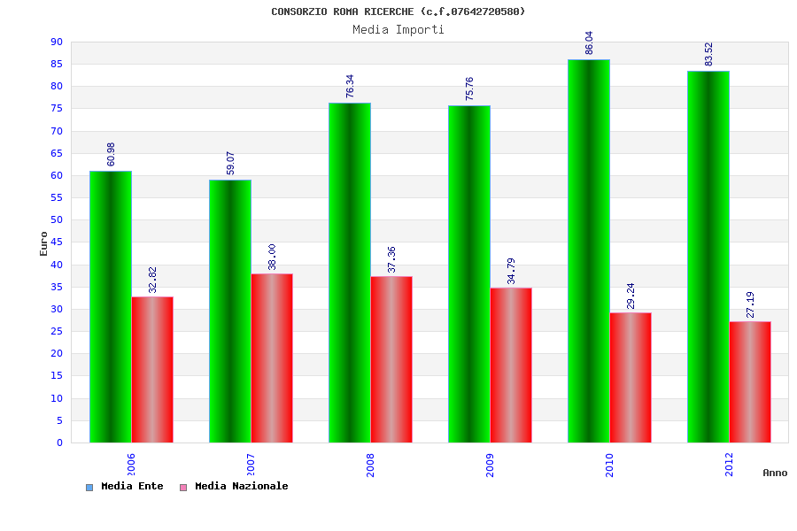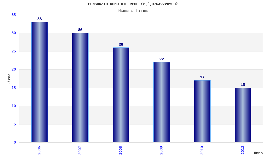 | Anno | Firme | Importi | Media | Naz. | Reg. | Prov. | Comu. |