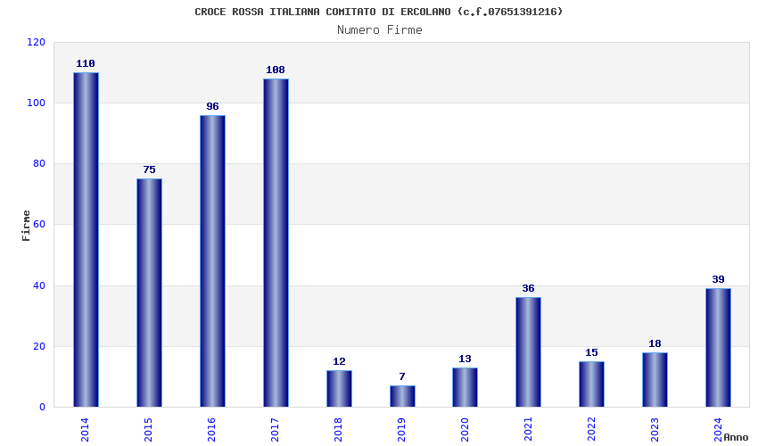 | Anno | Firme | Importi | Media | Naz. | Reg. | Prov. | Comu. |