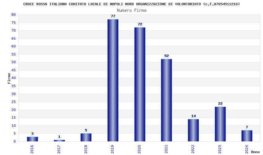 | Anno | Firme | Importi | Media | Naz. | Reg. | Prov. | Comu. |