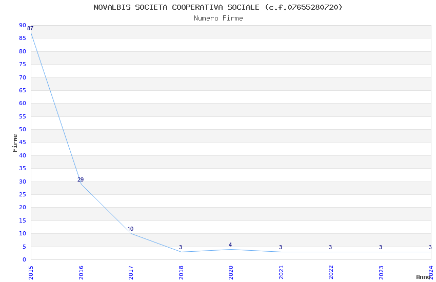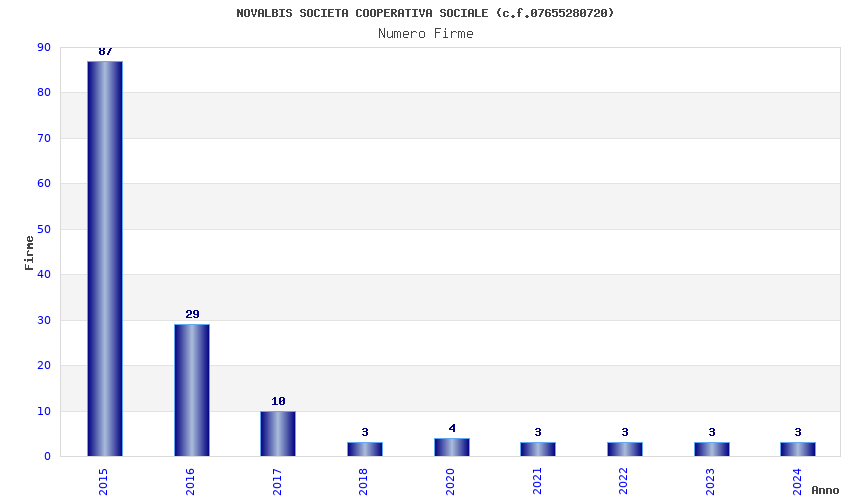 | Anno | Firme | Importi | Media | Naz. | Reg. | Prov. | Comu. |
