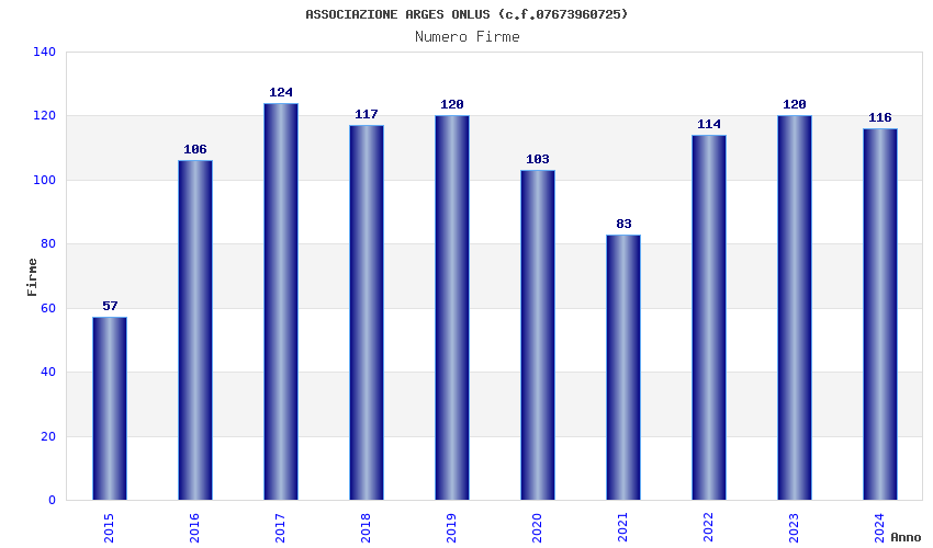 | Anno | Firme | Importi | Media | Naz. | Reg. | Prov. | Comu. |