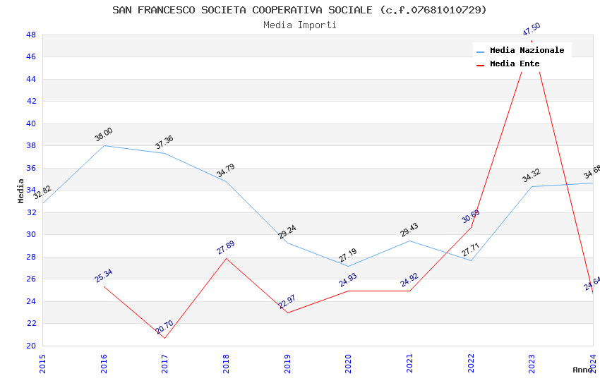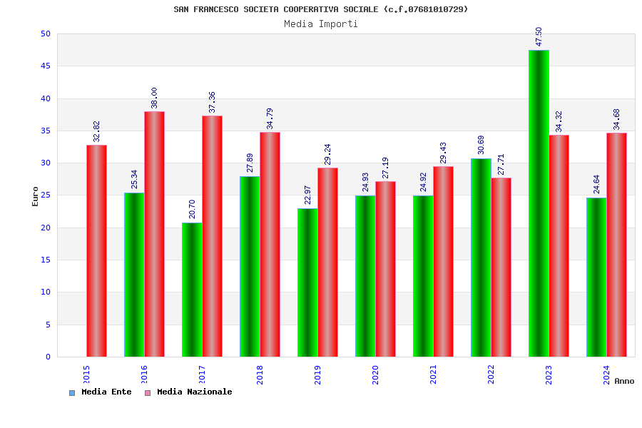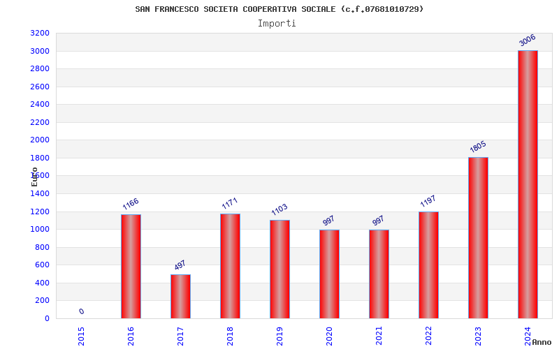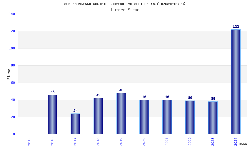 | Anno | Firme | Importi | Media | Naz. | Reg. | Prov. | Comu. |
