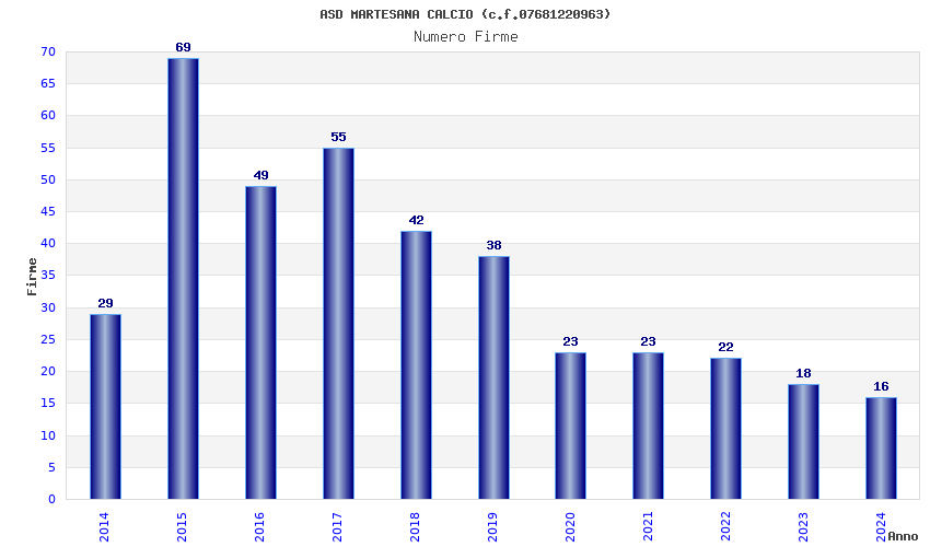 | 2015 | 69 | 3.423,97 | 49,62 | 14.903 | 3.449 | 1.309 | 5 |