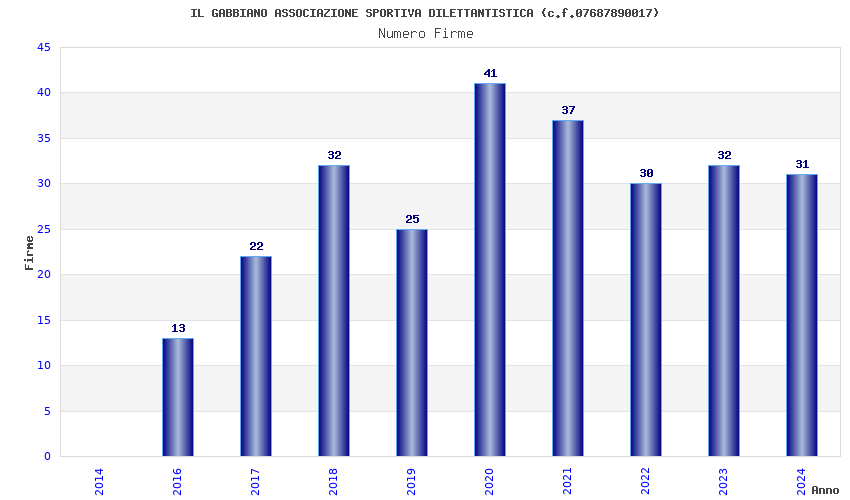 | Anno | Firme | Importi | Media | Naz. | Reg. | Prov. | Comu. |