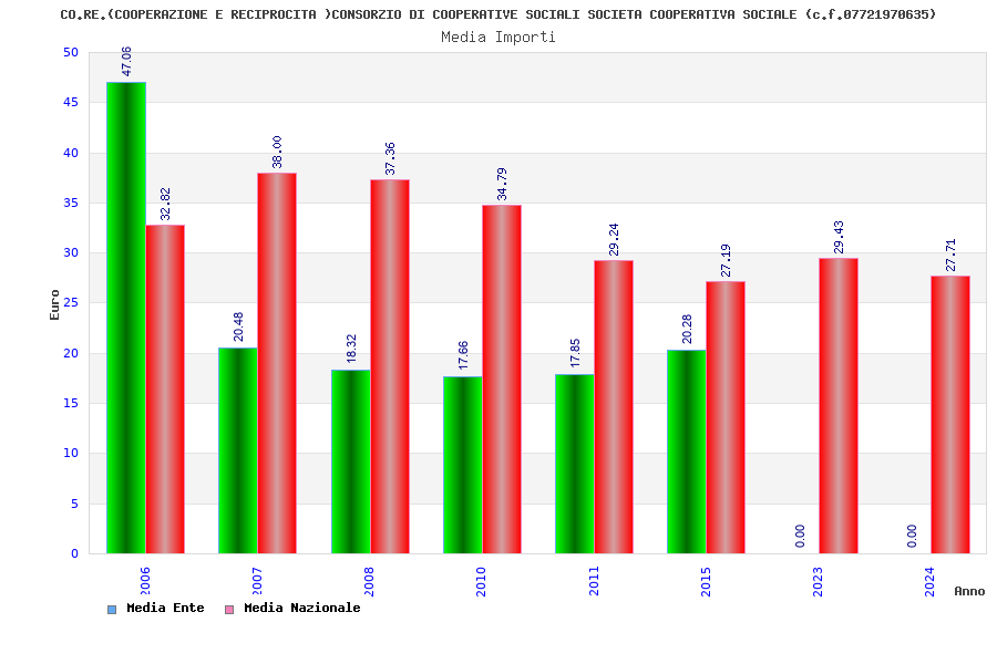 | Anno | Firme | Importi | Media | Naz. | Reg. | Prov. | Comu. |