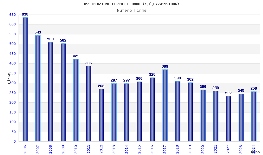 | 2024 | 256 | 11.913,70 | 46,54 | 3.961 | 565 | 513 | 469 |