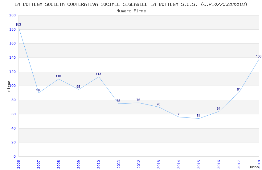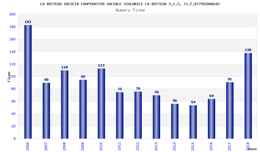| Anno | Firme | Importi | Media | Naz. | Reg. | Prov. | Comu. |