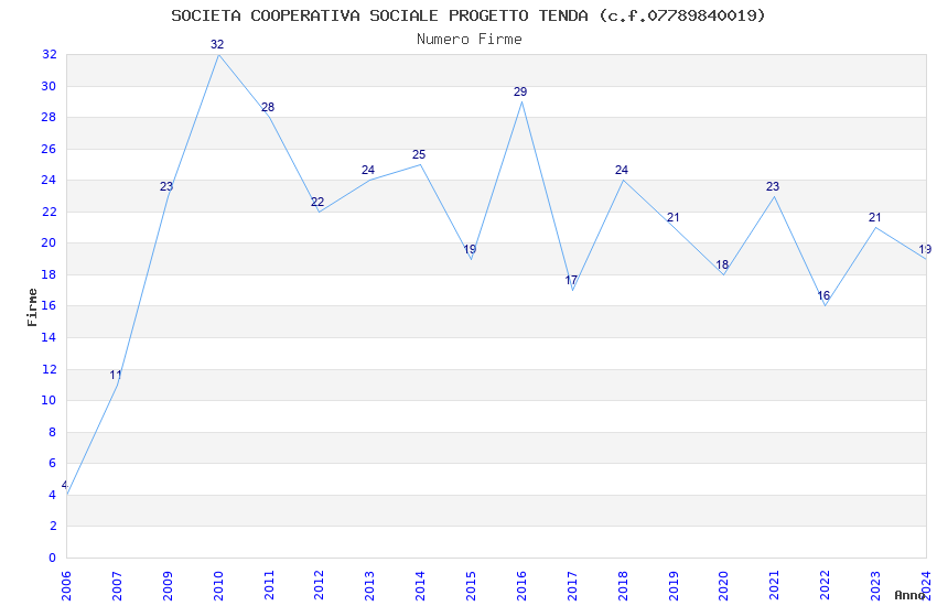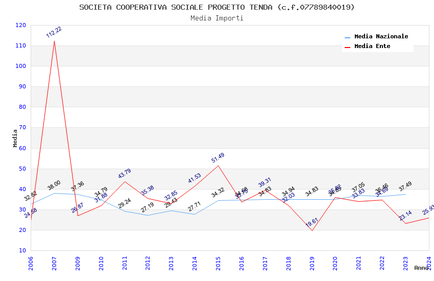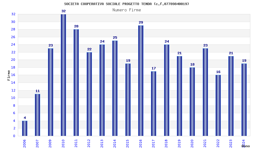 | Anno | Firme | Importi | Media | Naz. | Reg. | Prov. | Comu. |